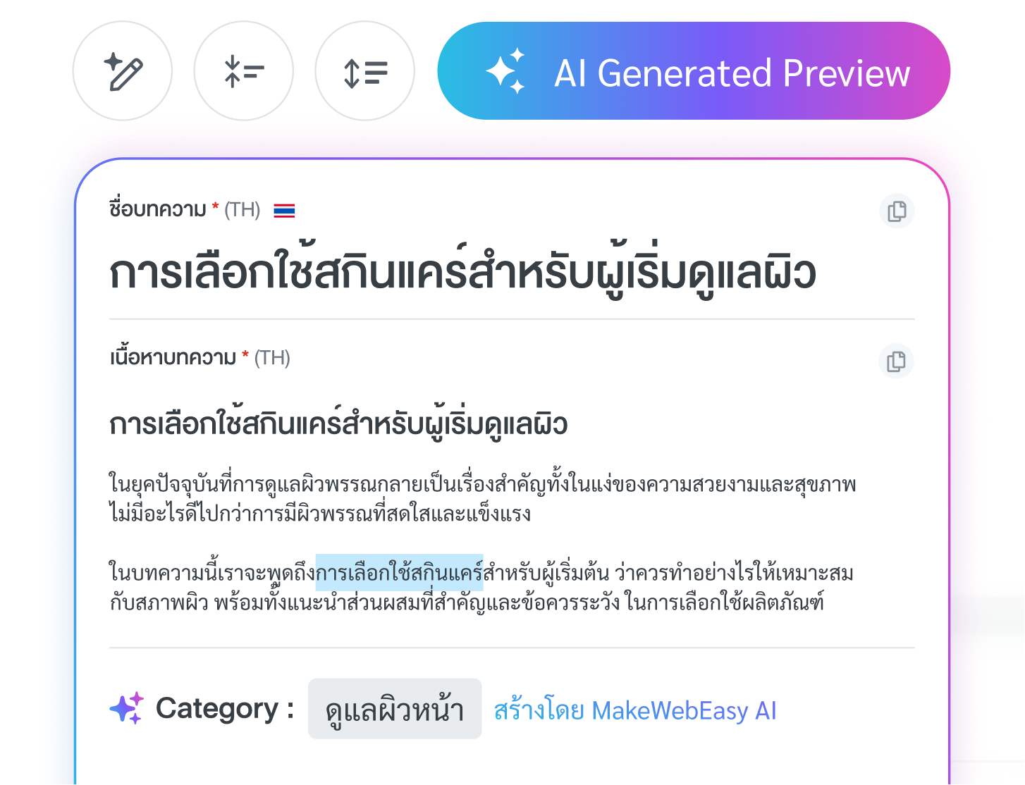 MakeWebEasy AI Content ได้ในไม่กี่ขั้นตอน